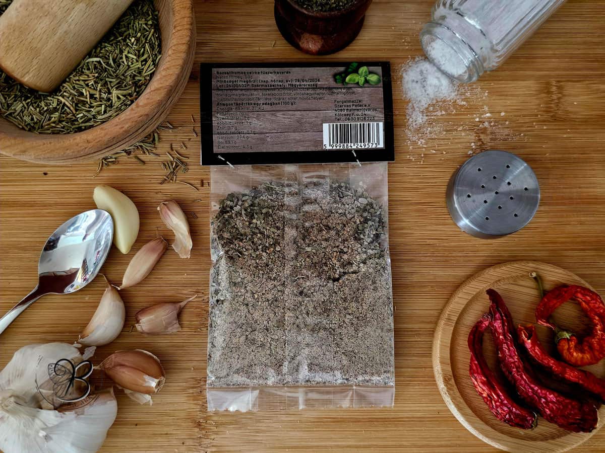 Az alapot a természetes, adalékmentes erdélyi só biztosítja, amely kiemeli a többi összetevő karakterét. A különleges fűszerpaprika mély, telt színt és finom édességet ad az ételnek, míg a fokhagymagranulátum és a vöröshagymapor komplex, házias ízt varázsol minden falatba. A keverék fő aromaprofilját azonban a bazsalikom és a majoránna adja – előbbi friss, enyhén ánizsos, virágos ízével, utóbbi pedig földes, lágy fűszerességével.